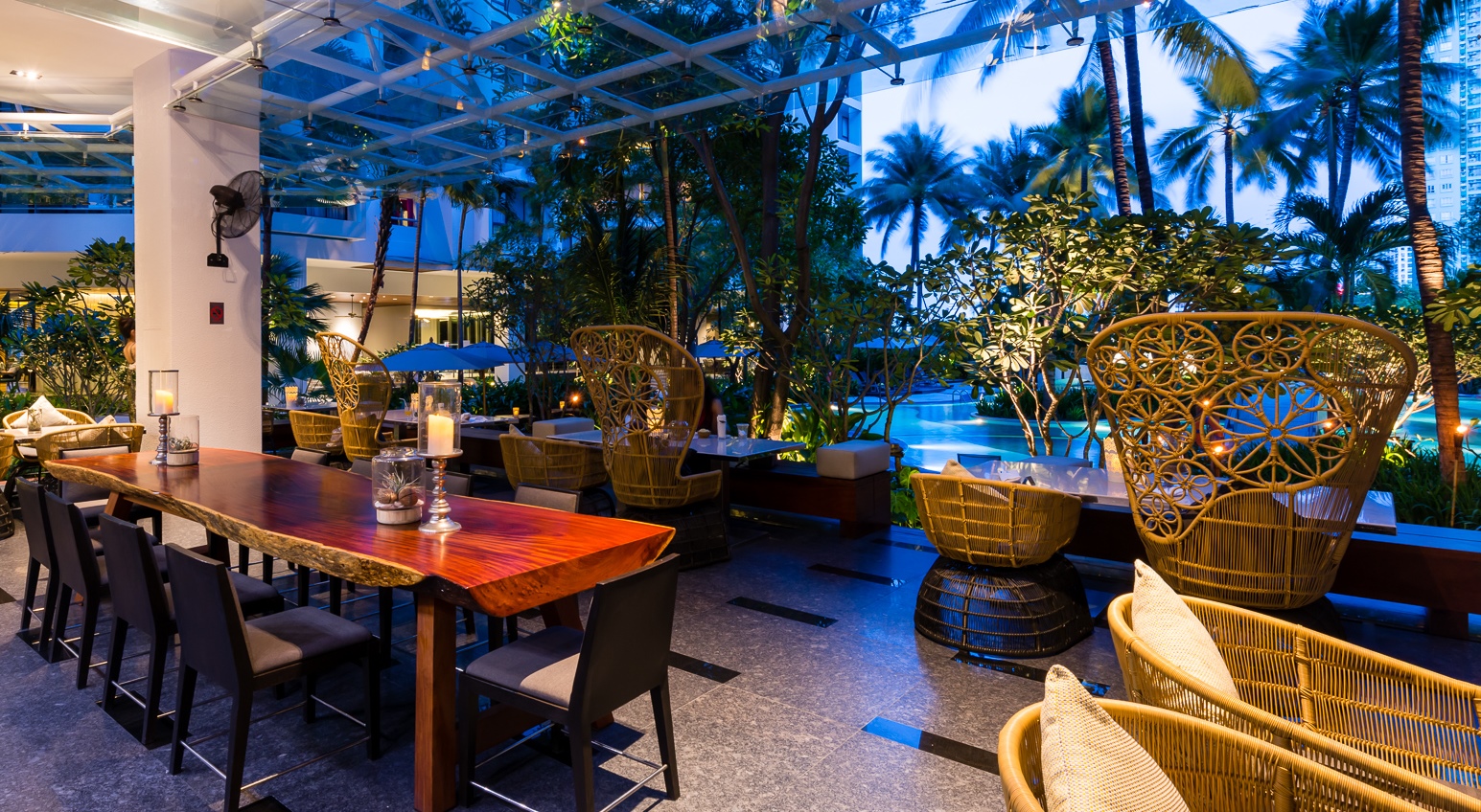 “The Flow Oasis Pool Lounge is Chatrium Residence Sathon Bangkok’s signature pool bar concept with a twist. Combining the modern ‘crafted by nature’ castaway island design theme with a transformational personality, it changes from a ‘Slow Days’ lounger into the ‘Happening Nights’ hang out hotspot. We would like our guests to be able to explore the flavours of our delicious Sip & Dip creations, hang out with friends, share moments with family and enjoy the oasis lifestyle around the iconic long wood table. Our culinary team creates casual dining from tapas to a full meal throughout the day. Flow Oasis Pool Lounge is your new secret spot to escape the everyday” said Mr. Magne Hansen, General Manager of Chatrium Residence Sathon Bangkok.
