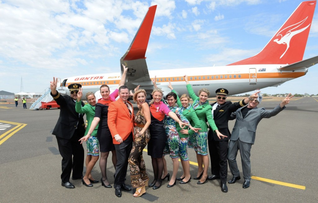 Qantas yesterday operated a one-off charity flight from Sydney to the Qantas Founders Museum in Longreach, using its ‘Retro Roo’ aircraft in 70s livery. Passengers got into the 70s spirit with retro outfits, a special Neil Perry-designed menu and cocktails, and entertainment from some musical icons of the era.