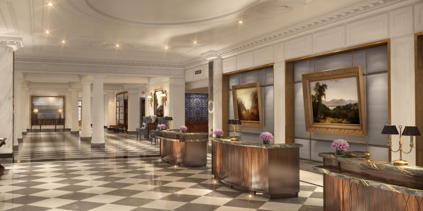 Under the direction of IHG Design Studio, architects Stonehill + Taylor, interior design firm HOK (formerly BBGM) and Shawmut Construction worked together to restore and enhance the property’s original style, while adding contemporary touches. Artwork was carefully selected to reflect the hotel’s 1920s legacy. Antique maps and early 19th-century Hudson River School landscapes, renowned for romanticising nature and highlighting areas of interest, such as the Catskill Mountains and the Adirondacks, are featured throughout The Barclay’s public spaces and guestrooms. In keeping with the Federalist design motif and sophisticated style, eagle medallion door plates are affixed on each guestroom, a feature that has been preserved from the original Barclay.
