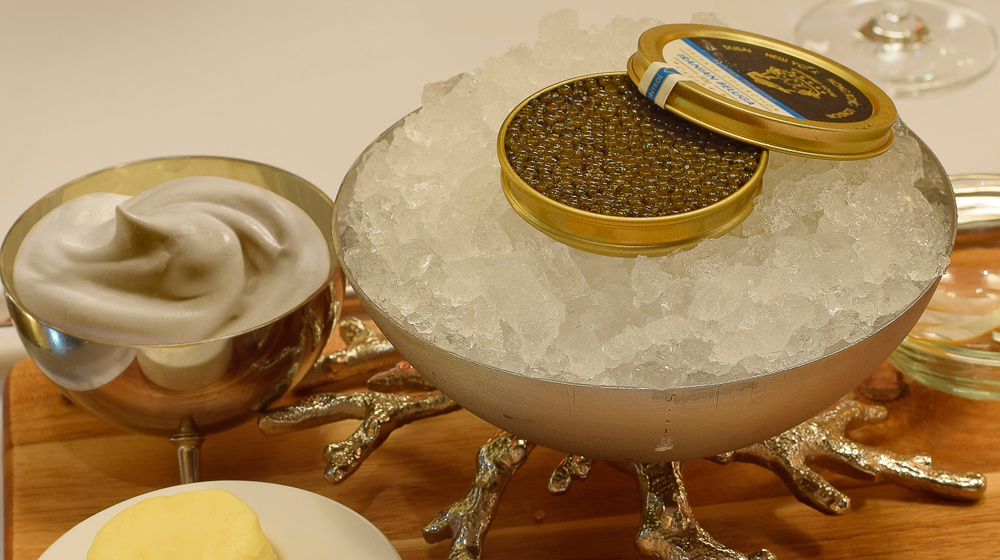 The premium caviar menu comprises Iranian Beluga Caviar, which is sourced from the world’s rarest, most prized and most expensive sturgeon fish. Carefully prepared according to Persian tradition, the grains are light to dark grey-coloured with a soft, creamy texture and a fruity, buttery flavour.