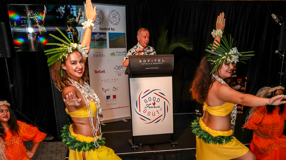 The worldwide celebration of French food received a tropical twist at the French Pacific Islands Good France/Goût de France dinner on Monday 20 March. The third edition of the worldwide gastronomic initiative saw more than 2000 restaurants in 150 countries celebrate French cuisine on Tuesday 21 March, led by the French Ministry of Foreign Affairs and International Development and multi-Michelin-starred chef Alain Ducasse. At Sofitel Sydney Wentworth, guests of Tahiti Tourism, New Caledonia Tourism and Atout France feasted on a menu created by Nicolas Bourgois from Nouméa’s Carpe Diem and Sebastien Prevel from Le Méridien, Bora Bora. The evening of dining and entertainment highlighted the relationship between the cuisine of mainland France and its Pacific islands, showcasing delectable dishes such as poisson cru.