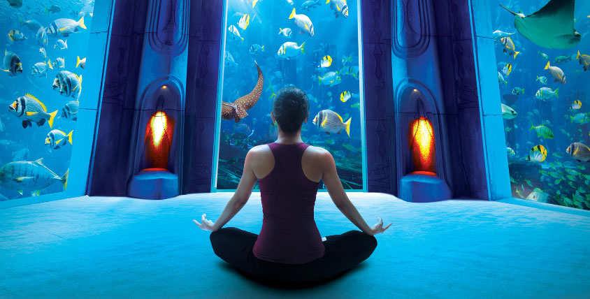 Set against the mesmerising tranquility of the Ambassador Lagoon, underwater yoga in The Lost Chambers Aquarium is now available every Tuesday and Friday morning at Atlantis, The Palm in Dubai.