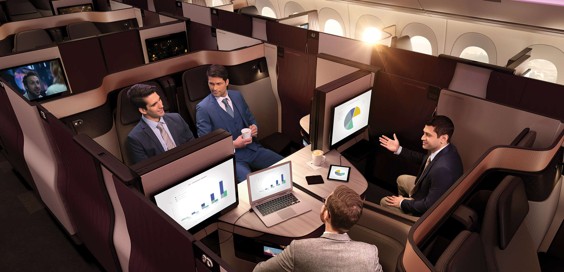 The Qsuite enables guests to fly in complete privacy and has a unique family compartment, making Qatar the first airline to offer a lie-flat double bed in Business Class.