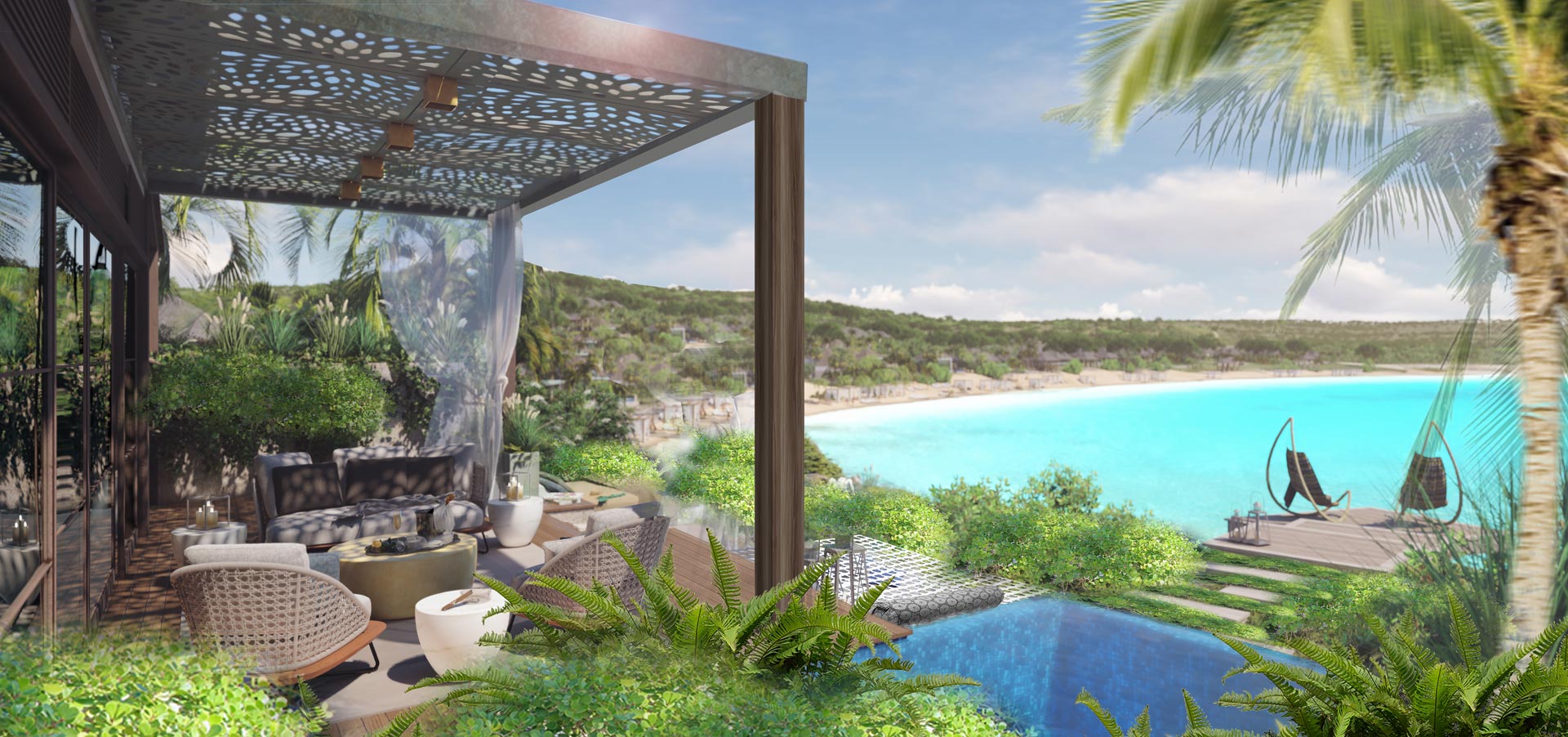 The resort will feature 47 pavilion-style suites, including an ultra-luxurious, three-bedroom presidential suite. Each accommodation will feature ocean views and amenities such as private infinity plunge pools, hammocks, open-air baths and showers and live orchid walls in each bathroom. Boasting a design that reflects the locale, the aesthetic borrows from the historic Caribbean and architectural pioneers to offer a classic feel coupled with modern amenities and services.
