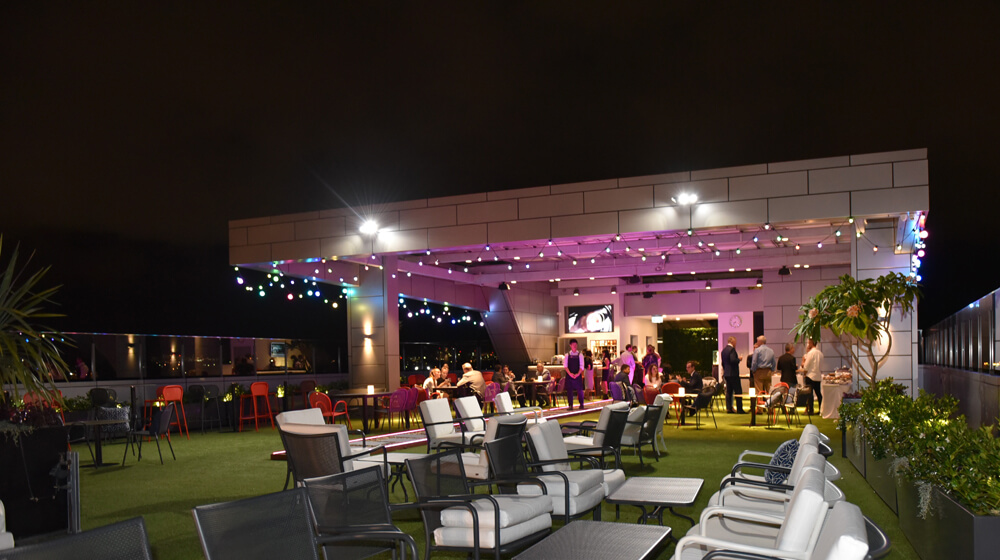 Lim Kai Hai, the Singaporean hotel owner, mingled with guests, while Deputy Chairman and Executive Manager John Sharp, shared details about the services and amenities the hotel has to offer. Sharp also revealed that the Rooftop area would be accessible to the public from Thursdays to Saturdays, 5pm–10pm, within the next month once the currently-under-construction-kitchen is up and running. The outdoor area will offer food selections (which event guests sampled), as well as a bar. The al fresco-style space features comfortable couches, smaller dining tables and colourful lights outlining the pergola, giving the garden and bar a relaxed, lighthearted ambience – especially around sunset.