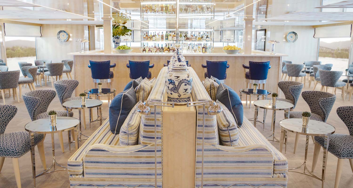 The S.S. Beatrice boasts yacht-style light wood with blue and white finishes throughout. Its renovated lobby features elegant mirrors, marble floors, a white Murano chandelier with blue shades, and a grand staircase made of nickel and black iron – a signature design element of Uniworld’s Super Ships. The ship’s redesigned lounge includes sofas and chairs with hand-made upholstery, a parquet floor and upholstered ceiling panels, solar shades, and new USB ports allowing guests to recharge anywhere they are sitting. The artwork throughout the ship includes pieces from Pablo Picasso, Alexander Calder and Pino Signoretto.