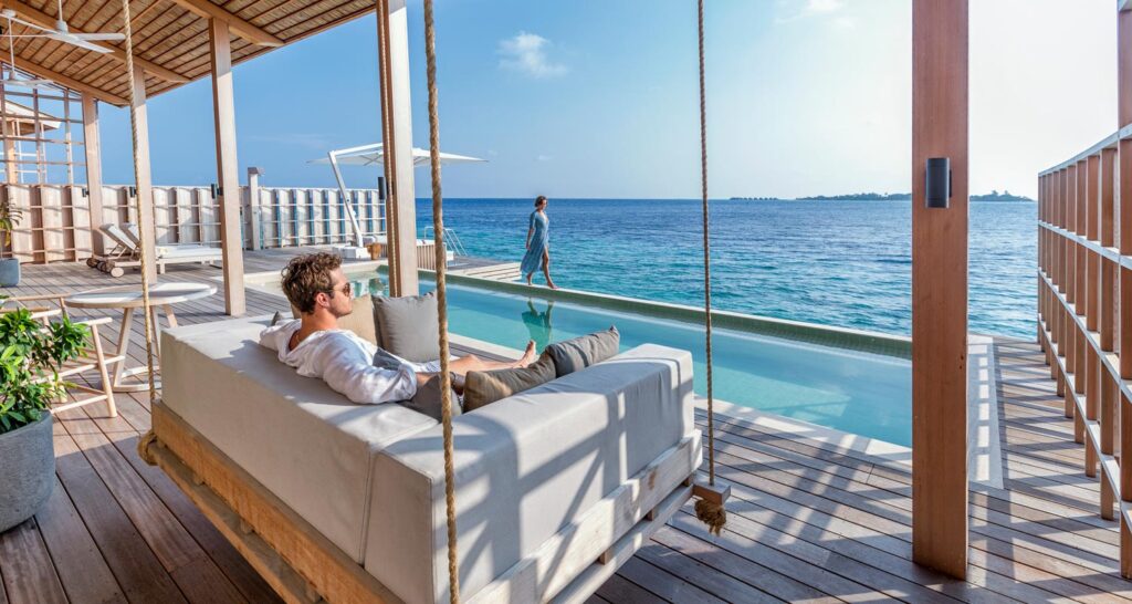 Kudadoo boasts 13 one-bedroom Ocean Residences, each measuring 300 square metres, and 2 two-bedroom Ocean Residences of 380 square metres. Each offers privacy, spaciousness and comfort with a dedicated butler and super-king-sized beds, some of the largest private sundecks in the Maldives and all with a 44-square-metre terrace pool as well as in-villa baths, Bang & Olufsen audio systems and IPTV (including Netflix and Spotify), unique to Kudadoo in the Maldives. Kudadoo also offers facilities for guests’ personal and household staff to be accommodated.