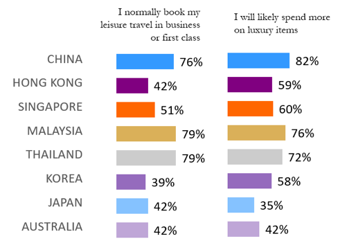 Millionaires in China, Malaysia and Thailand show higher propensity to travel in style and to spend on luxury items overall.