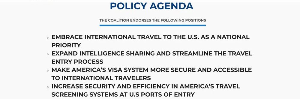 Visit US Coalition will actively promote policies that will have an immediate positive impact on inbound travel, namely expanding and rebranding the Visa Waiver Program (VWP), setting goals for expanding travel visas, boosting enrolment in Global Entry, increasing the number of visa-processing facilities worldwide and developing a criteria for 10-year visas with qualified countries.