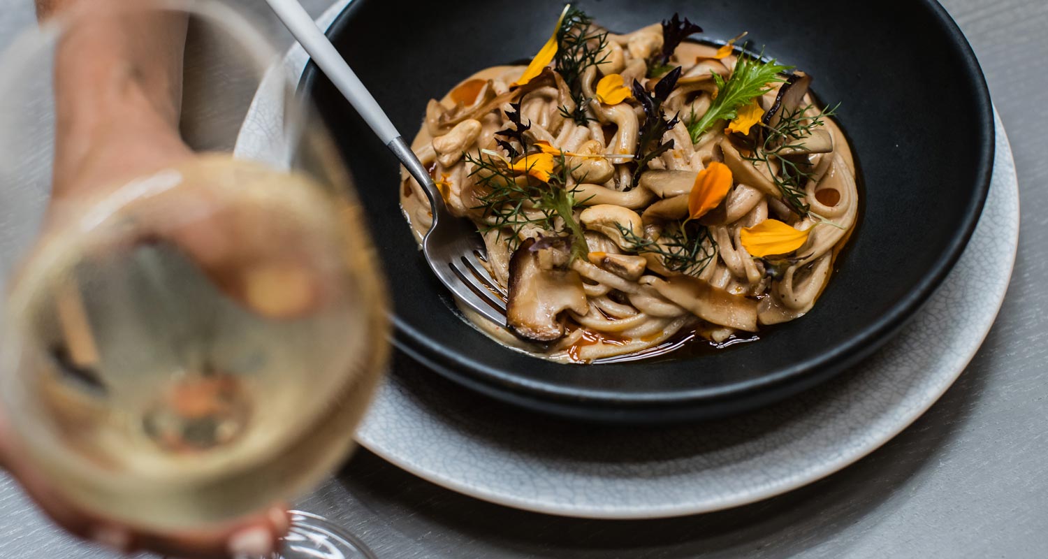 The cocktail list is also mainly plant-focused featuring botanicals, fruit and vegetables. For example, the Enchanted Forest cocktail – which took the Alibi bar team eight months of research and mixing to create – involves an infusion of fresh Portobello mushrooms and absinthe foam made from green apples.