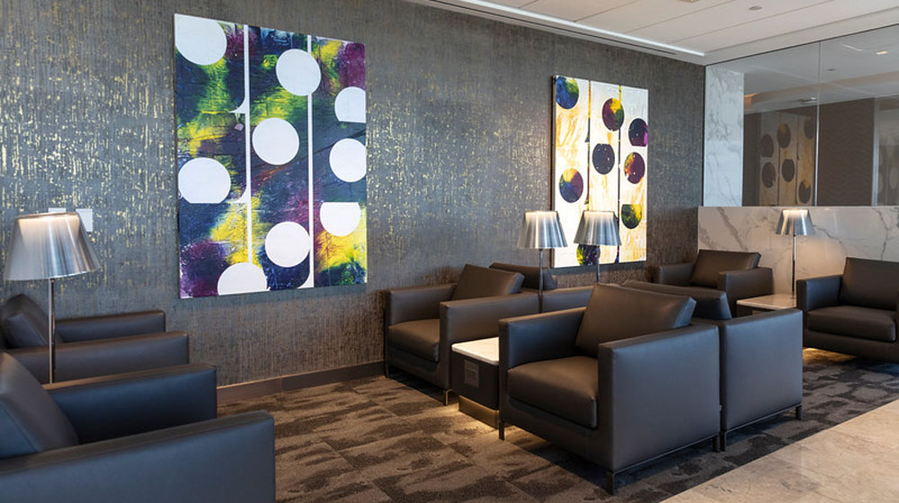 United’s latest Polaris lounge exhibits distinct flair from Houston, the culinary and cultural capital of the South. Unique artwork is featured throughout the facility by two Houstonian artists – Shane Tolbert and Terrell James.
