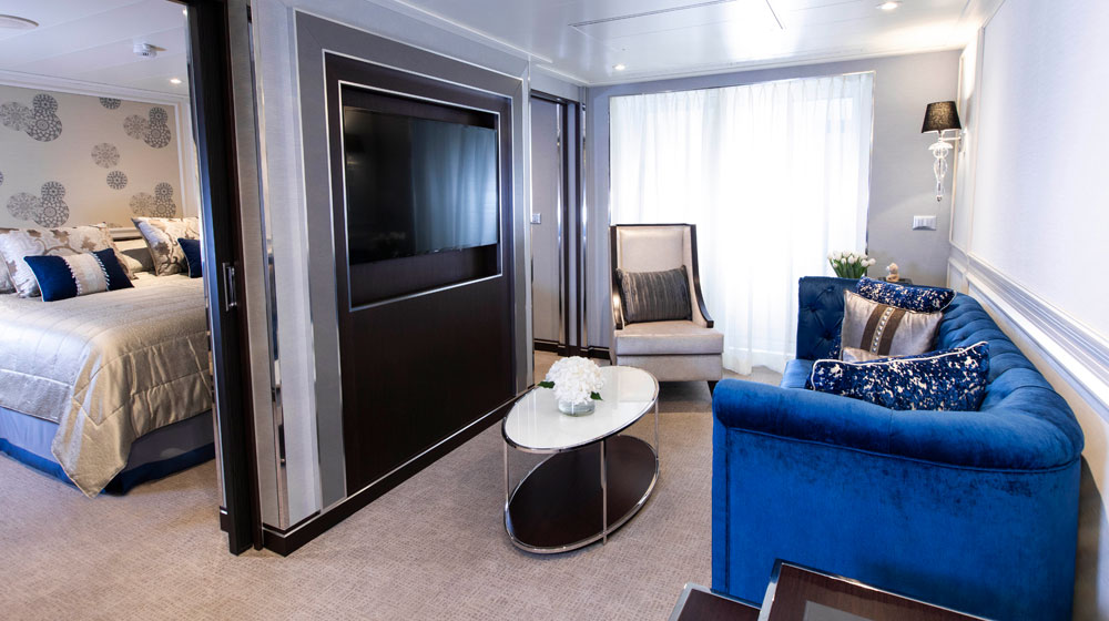 Keel laying ceremony attendees toured the full-size Concierge and Penthouse suite models at the Fincantieri shipyard, representing a majority of the suites on-board Seven Seas Splendor.