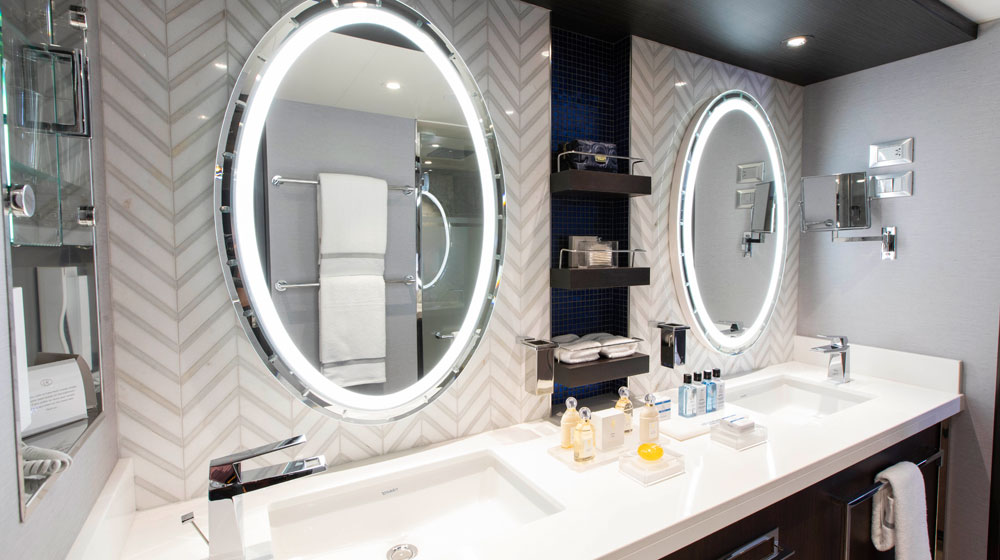 “We designed these suites, and the entire ship, with meticulous attention to detail. The thickness of a door knob, the sleekness of a headboard, the style of a chair, every detail has been thoughtfully considered to create a ship that perfects luxury,” said Robin Lindsay, Executive Vice President of Vessel Operations for Norwegian Cruise Line Holdings Ltd.