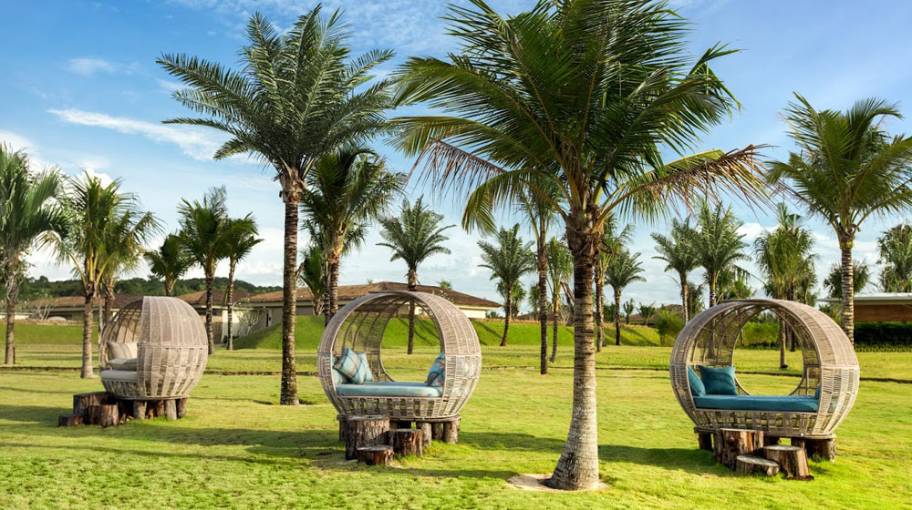 Opening last June with 97 private pool villas, the five-star property has added eight new villas to its collection with 25 more to follow. The thatched roof abodes, a nod to coastal living, start at a spacious 128 square metres and are one- or two-bedroom with verdant views of the neighbouring river and jungle. Interiors feature a natural colour scheme with earthy tones and custom-made sunken wooden tubs. Floor-to-ceiling glass doors lead to private walled gardens, plunge pools and floating hammocks.