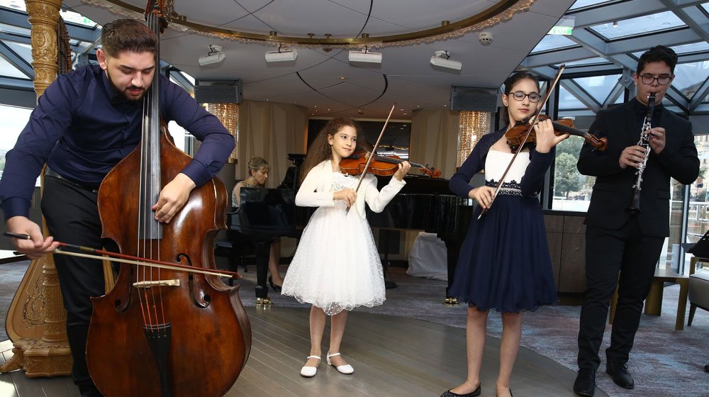 Tenor Steffan Mullan performed during the ceremony, while Young Virtuosos artists performed aboard the ship following the traditional blessing, including clarinetist Ali Dániel Lugosi, double bassist Tamás Kökény, violinist Amira Abouzahra, violinist Mariam Abuzahra, and Budapest Festival Orchestra harpist Ágnes Polonyi with a special performance onboard the ship.