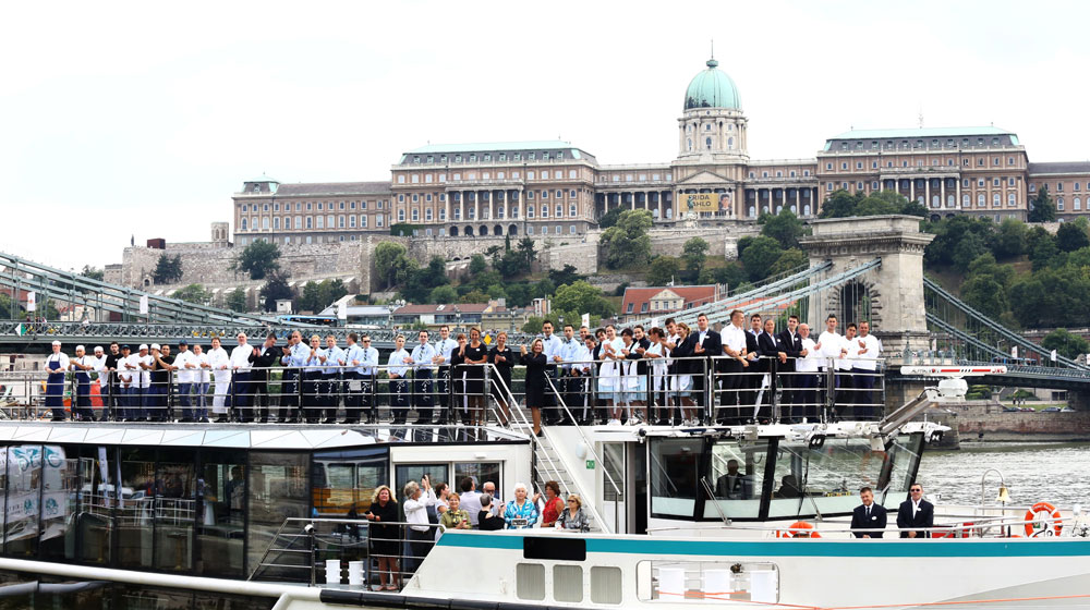 The ceremony took place during the ship’s overnight stay in Budapest on its week-long “Danube Serenade” voyage, allowing guests aboard the sailing to participate in the festivities, while Crystal crew members also looked on from the decks of the ship.