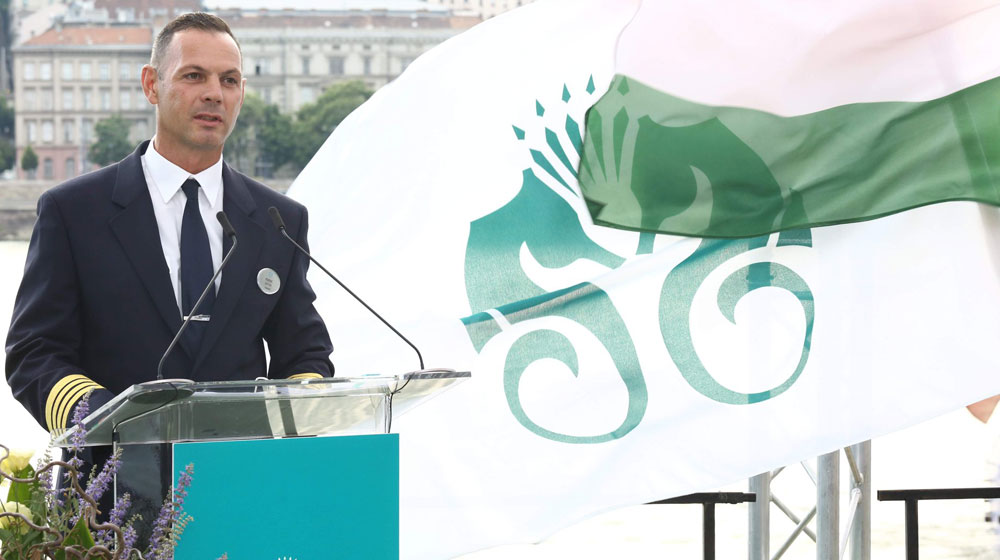 The ceremony took place during the ship’s overnight stay in Budapest on its week-long “Danube Serenade” voyage, allowing guests aboard the sailing to participate in the festivities, while Crystal crew members also looked on from the decks of the ship.