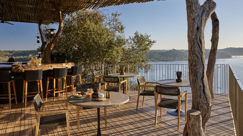 With nature as a key design informant, the new cliff-top fire pit and suspended bar with 270-degree views of the Malilangwe Wildlife Reserve offer the experience of being totally immersed in the natural world. One of Africa’s best kept secrets, the Malilangwe Wildlife Reserve is an untouched wilderness comprising 38 different habitats and ecological zones in 5,261 hectares of protected land in south eastern Zimbabwe – a critical conservation priority for Singita, in collaboration with the non-profit Malilangwe Trust, who manages and protects the reserve.