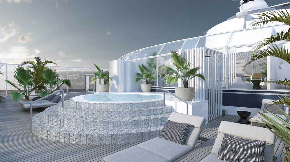 Every ship will offer The Retreat Sundeck and The Retreat Lounge, both designed by Hoppen. In imagining The Retreat Sundeck, she has created a chic, open-air hideaway with the feel of a high-end resort, where guests can unwind on plush loungers, sip cocktails and savour refreshing treats.