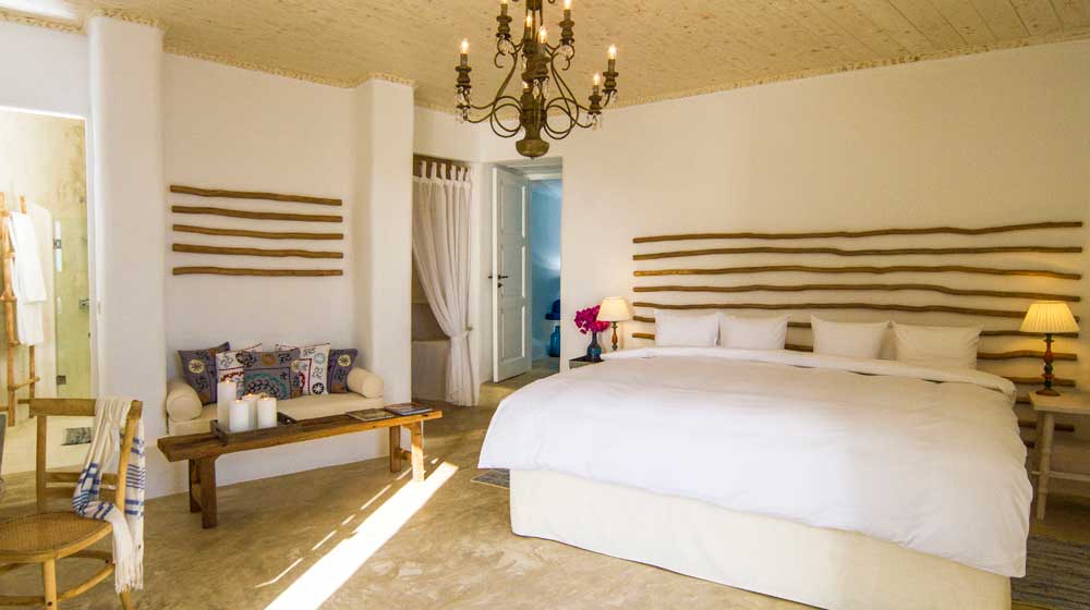 What makes this accommodation super-luxury? Where else are you offered a choice of Caran d’Ache, Montblanc and Peugeot pens to sign the register? Where else on this island are no others allowed to come? The pool and the restaurant are hotel-guests only, and although it does have 19 rooms – an understatement for the styles of lodging, as you will see – the hotel avoids having them all occupied at once, and if the staff can upgrade you, they will. Somehow, it has managed from day one (back in 2013 when the current Chilean owner bought the place) to fill as many rooms as it wants, at the rate it wants, with no branding and no affiliation (Mantis Collection merely handles SEO and replies to TripAdvisor posts).