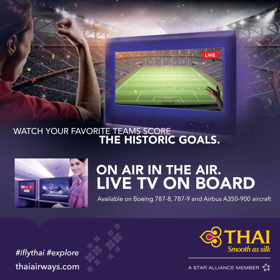 Thai Airways International acting president Mrs. Usanee Sangsingkeo said that the digital era helps viewers to keep abreast of the latest news through various online media. THAI is fully aware that passengers need to keep informed on the latest news while travelling on board and has launched a new “LIVE TV on Board” service that enables passengers to watch broadcast television programs, such as news channels and sports competitions.