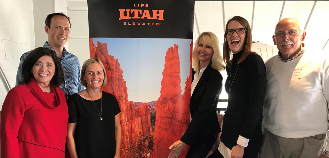 Lead image – Joyce Kelly, St George & Zion Convention & Tourism; Corey Marshall, Canuckiwi/UOT; Karen McCardle, Canuckiwi/UOT; Camille Johnson, Kanab/Southern Utah; Becky Johnson, Utah Office of Tourism and Bill Scoffield, Garfield County Office of Tourism. Missing from photo: Jess Luxton, Park City CVB.
