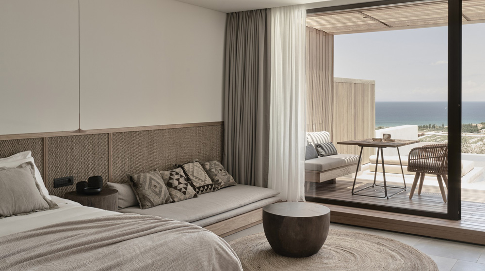 Perched on a hillside on the northeastern coast of the island, the property offers a unique vantage point from which to absorb this island’s natural beauty. The sea, countryside and sunset are all within view, framed by Olea’s luxe suites and communal areas, each defined by modern and elegant interiors.