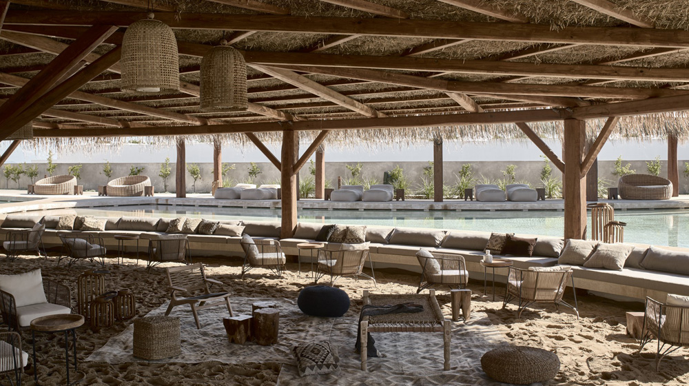 A fluid mix of smooth stone, textured linens and an earthy palette lends itself to an understated bohemian style, each cube structure flooded with enough light that the boundaries between inside and out are comfortably blurred. This softening of perimeters is further emphasised by private swim-up pools in some suites and easy access to Olea’s dominant waterway.