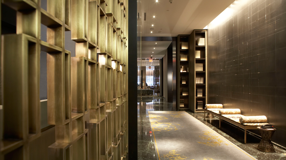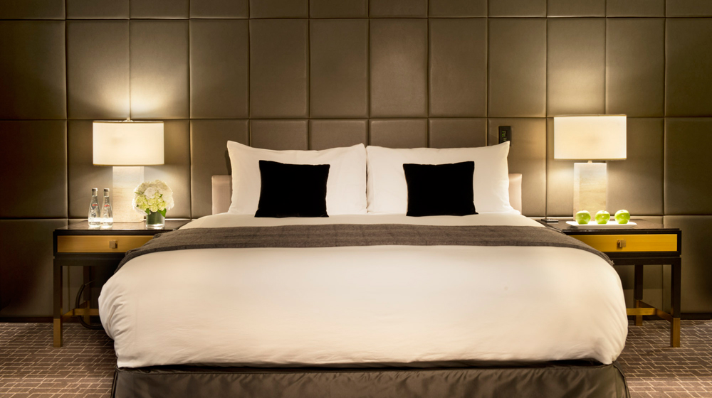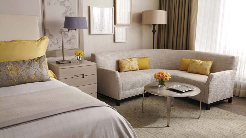 Yabu Pushelberg also did the interiors here … I adore suite 1120’s soft grey-green colouring, accented with soft orange throw cushions. The whole effect – with pale wood and some soft carpeting that feels deliciously sensuous in bare feet – is so right for today’s Light, Bright and Elevating mode. Everything, including light switches, is simple, uncomplicated (the espresso machine is one of the most basic, just as most guests have at home). Gstrein has added such personal touches as full bathroom toiletries that thoughtfully include Freshstarts makeup remover pads. Interestingly, the current owner, the car and truck bumper magnate, Shahid Khan, apparently loved the hotel, but he could never get a room when he came to visit his Ontario factories. (The answer, my friend, was blowing in the wind: BUY the hotel.)
