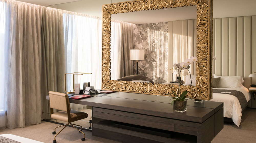 “Whether for business or leisure, our suites have been purpose-designed for indulgence and to satisfy the most discerning traveller. There is no ‘entry level’ experience here – each spacious, sumptuously appointed room features a bronze wet bar, 55-inch mirror television that doubles as functional art, Bose Sound Bar and a large, exquisitely finished ensuite with double vanities, privacy switch glass and premium bathing amenities. An extended mini-bar offering, including a Eurocave eight-bottle wine fridge stocked with premium local and international drops, and 24-hour in-suite dining menu, heightens the luxury experience.”