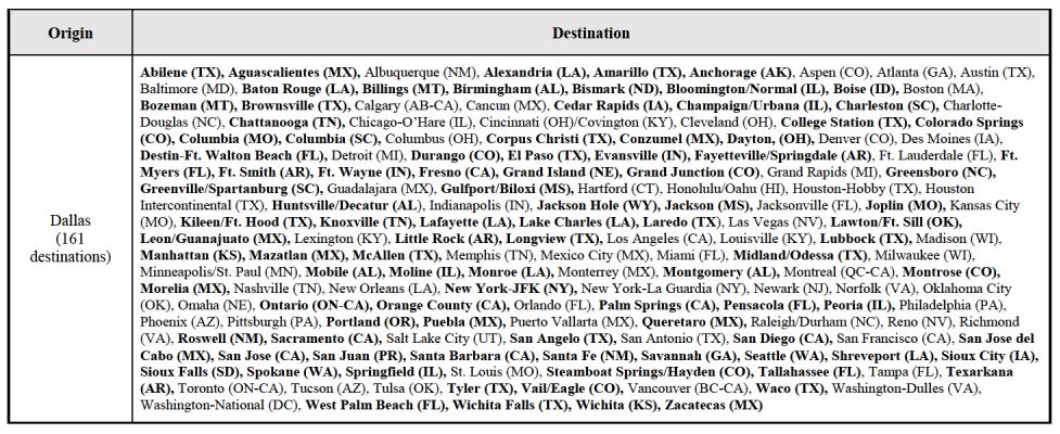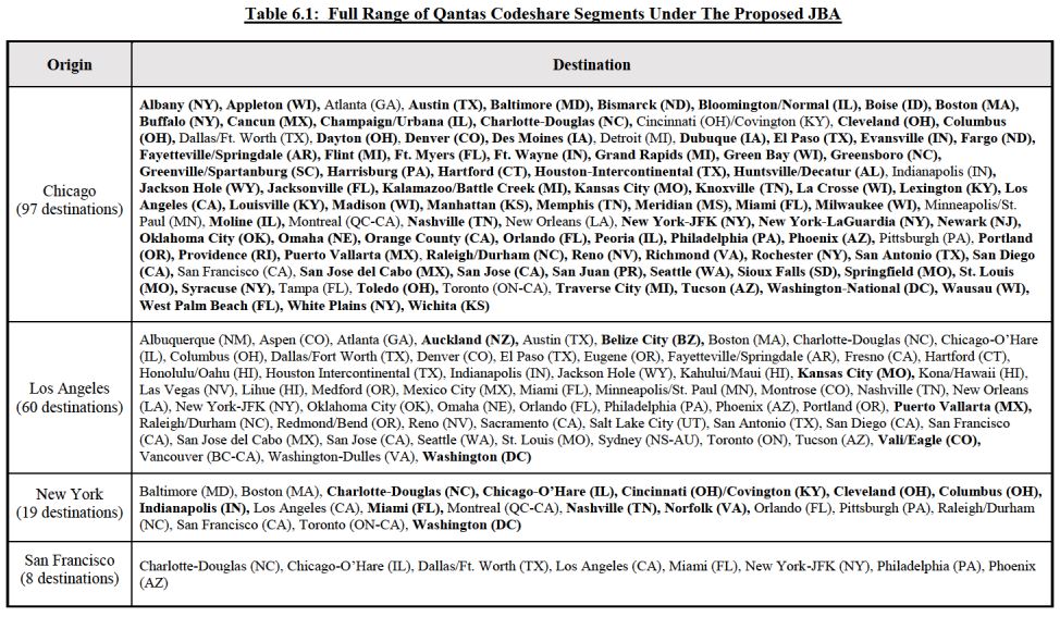The table above is contained with the “Response to Order Requesting Additional Information” and indicates that Chicago will immediately leapfrog Los Angeles as Qantas’ second largest codeshare hub in the US with American Airlines, while Dallas will swell to a total of 161 destinations.