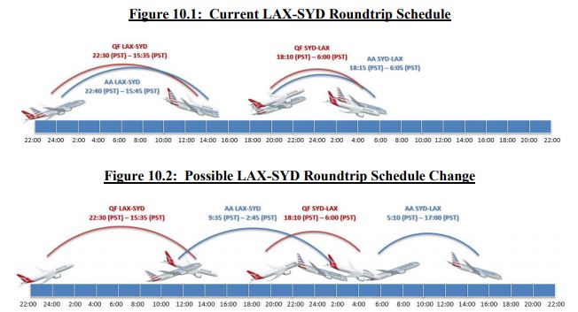“The reduction of feed support from Qantas’ codesharing on American’s long-haul flights forced American to down-gauge its LAX-SYD flight to a smaller aircraft (American also downsized its offering on LAX-AKL to seasonal service). For Qantas, lack of American’s feed support led to down-gauging of its DFW-SYD flight from a daily A380 service to a 6-days-a-week service, beginning February 2019,” the submission said.