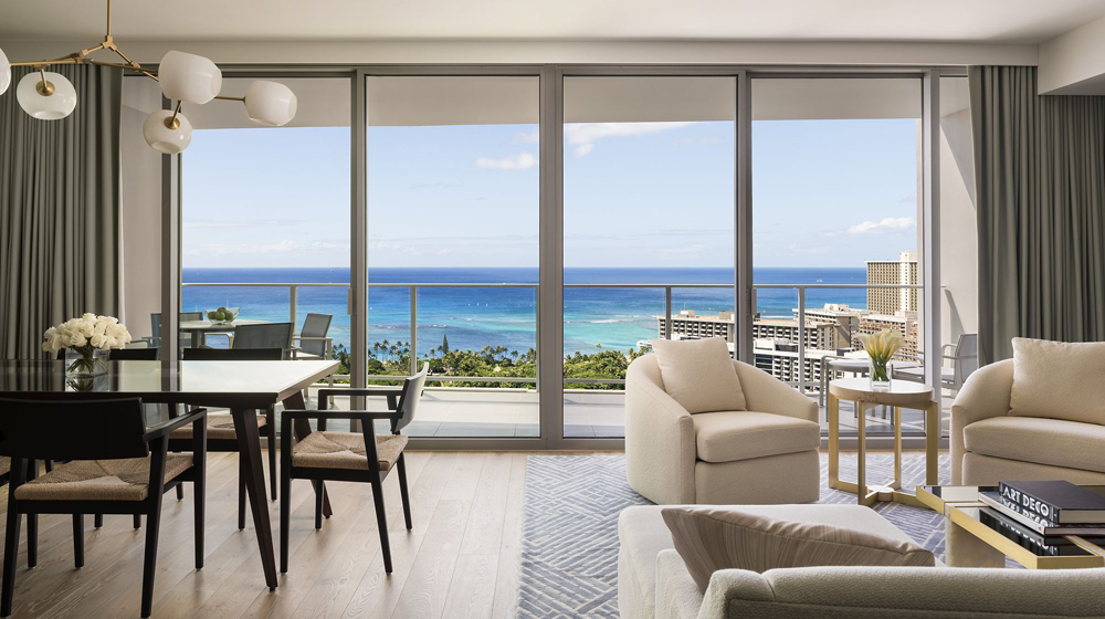 The Ritz-Carlton Residences, Waikiki Beach © Two-Bedroom Suite, Premier Ocean View – Living Room (‘Ewa Tower)