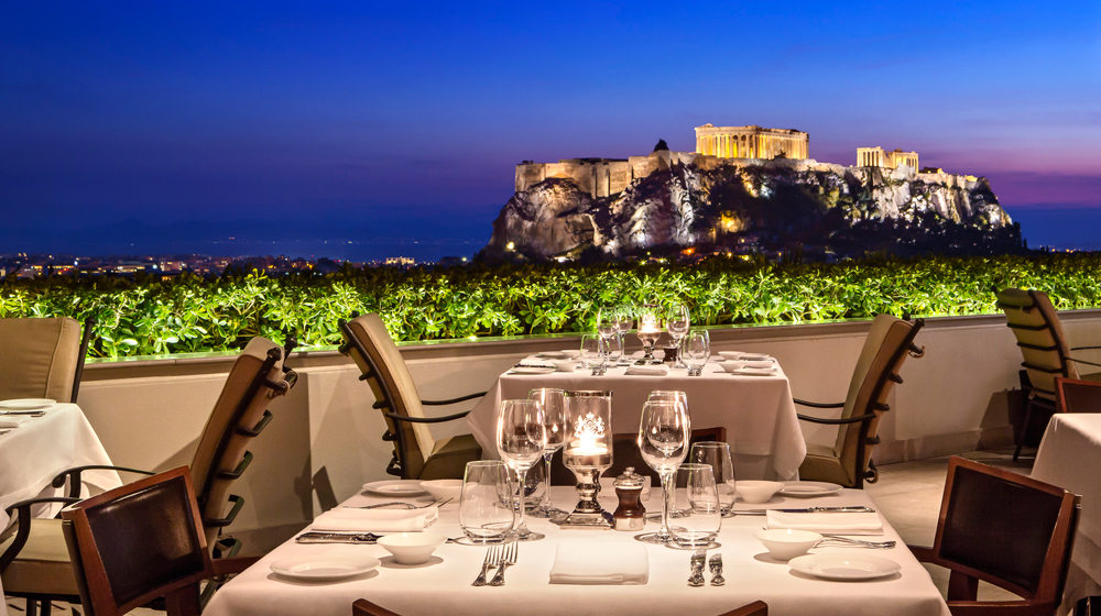 After a much-needed ESPA revival in the hotel’s spa, dinner was one of those meals to remember at the GB Roof Garden Restaurant & Bar. Having said that international visitors are now returning to Athens, I must add that local people, who for a few years have stayed in their houses and presumably had their taramasalata and grilled fish in the privacy of home and family, are beginning to revert to their traditional habit of joyfully dining out, en masse.