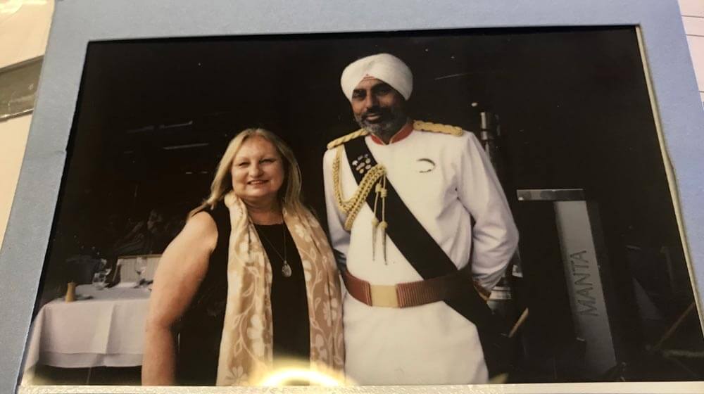 Guests posed with Raffles Singapore doorman, Narajan Singh