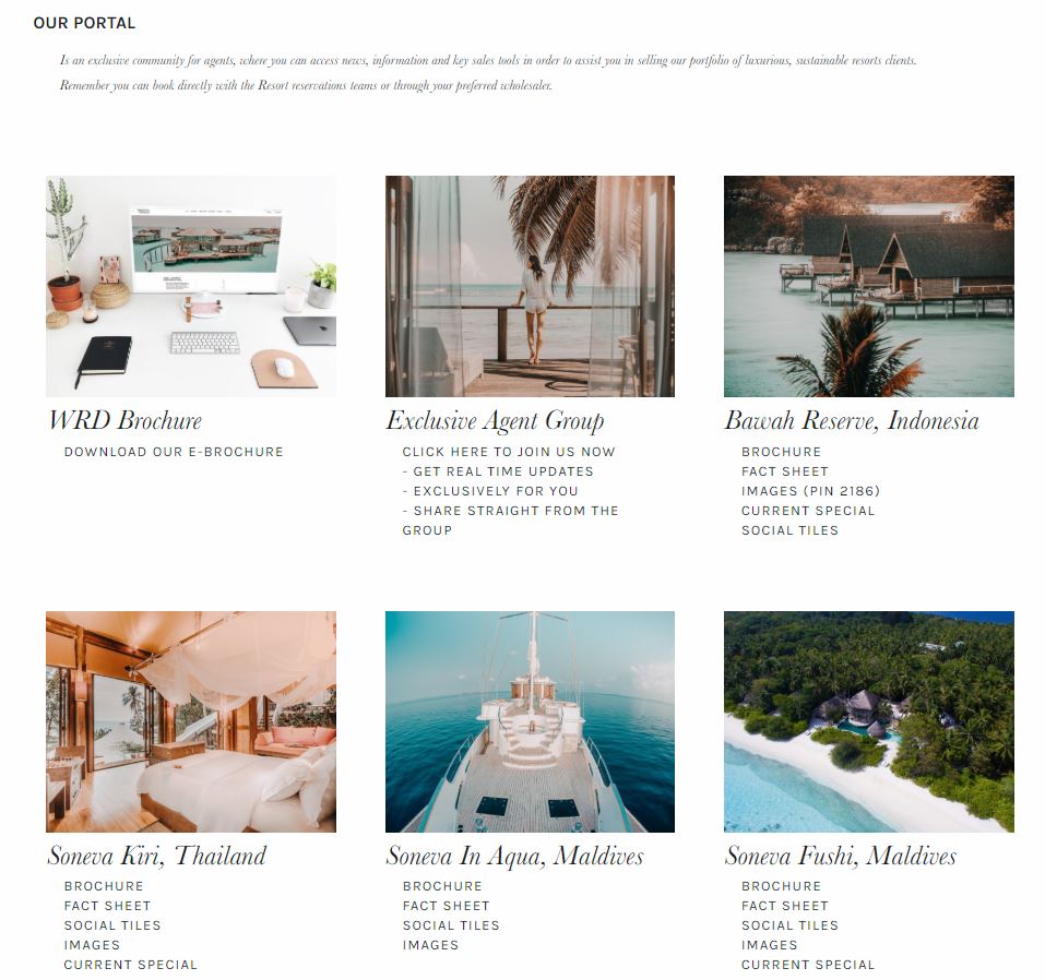 To complement the portal, WRD has also launched an interactive Facebook group for agents where they can read real-time news and updates about the resorts and engage with members of the WRD team.