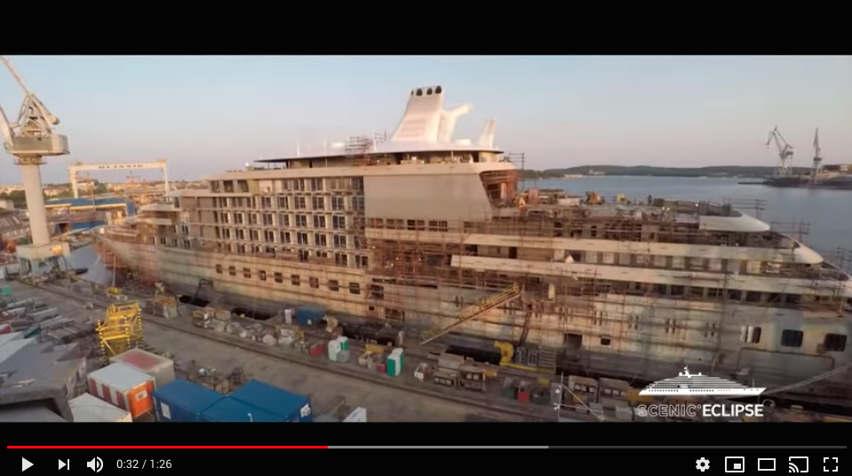 Scenic Group Chairman Glen Moroney has today released a video detailing the stage of construction the company’s first ocean-going ship, Scenic Eclipse, has passed.