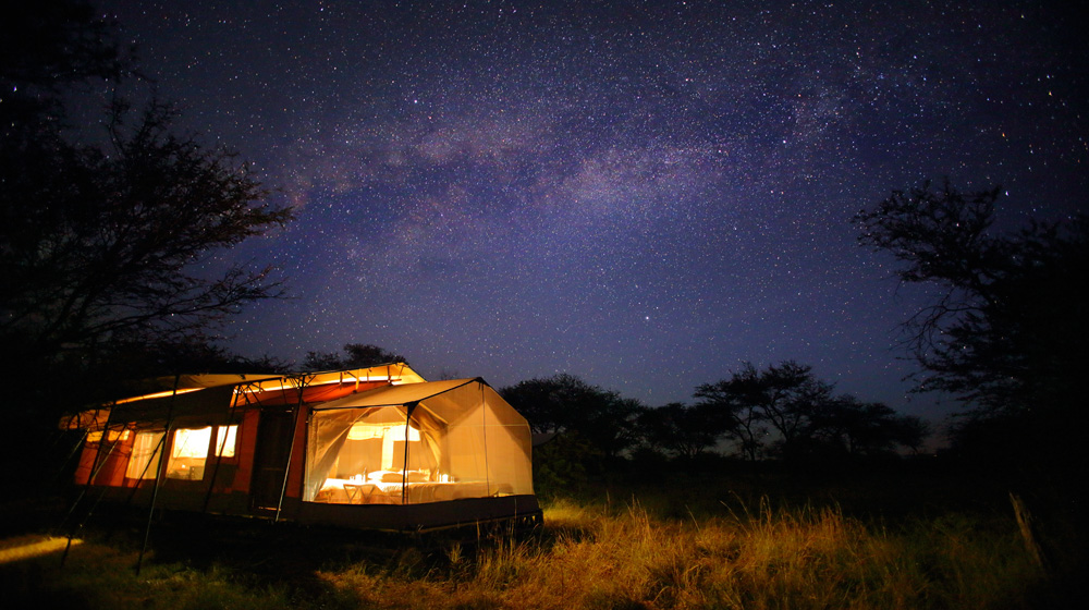 This year, for the adventurous, the new star gazing tents offer the opportunity to sleep under the African night sky. They have been designed so that a portion of the tent boasts a 270-degree view from beneath a meshed net, offering guests an outdoor experience whilst still remaining indoors. Guests will have the option to have their beds rolled from the main bedroom out to the custom-designed, mosquito net canopy at the front of their tent, allowing them to look up at the African night sky from the comfort of their bed. Look out for shooting stars, listen to the grunts of a million wildebeest, and maybe catch the low, reverberating roar of a lion. Guests can roll their beds back into the main bedroom of their tent at any time during the night.
