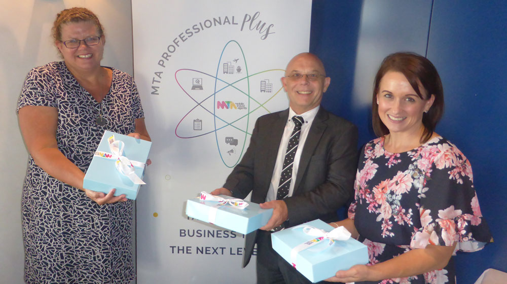 MTA – Mobile Travel Agents’ Kirsty Tate, Training Manager; Don Beattie, CEO and Kerryn Taylor, Marketing & Communications Manager. Every member of MTA received a Tiffany-like gift box couriered to their front door, containing details on the new MTA Professional Plus platform.