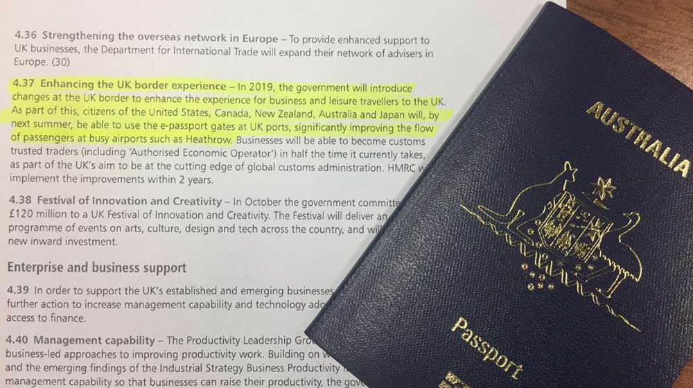 Australia’s High Commissioner George Brandis praised the move enabling Aussies to use ePassport gates, saying, “we’ve been working towards this for some time so it is great to see it announced”.