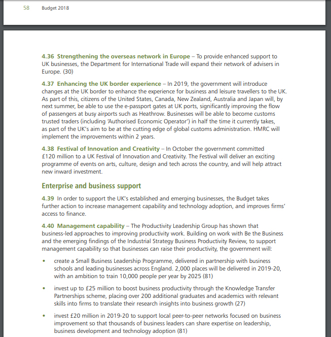 Page 59 from the 2018 Budget. Point 4.37 "Enhancing the UK border experience" Page 59 from the 2018 Budget. Point 4.37 “Enhancing the UK border experience”
