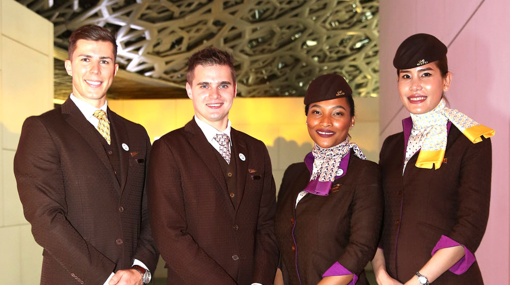 Lead Image: Etihad Airways Cabin Crew in new limited edition scarves and ties designed by Diane von Furstenberg.