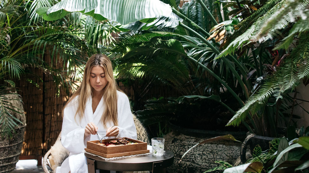 Guests can also enjoy a leisurely lunch or dinner after their treatment at The Botanica Vaucluse, a relaxed dining restaurant nestled among fragrant herbs, citrus trees and strawberry bushes that has a philosophy centred around a commitment to local growers and wholesome, seasonal ingredients. Executive Chef Perry Hill sources much of his produce from the kitchen garden or The Botanica’s own Jamberoo Valley Farm which inspires the not only the restaurant dishes, but the house-made gin and the whimsical copper archway by Charlie Albone, cascading with hanging succulents at the entrance.