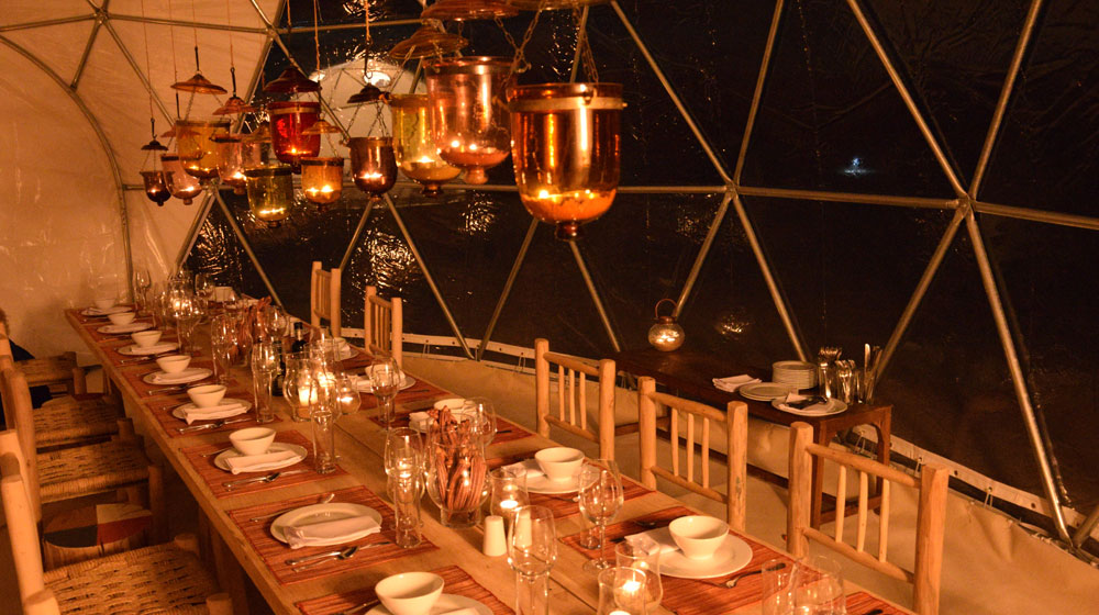 The Dome camp looks like a space station creation, and is comprised of a series of metallic structures featuring transparent panels on the front and on top. There are six luxury bedroom domes. The Lodge domes offer the creature comforts of a hotel room, with a private bathroom, comfortable bedding, interior decoration and heating. Inside, a wooden screen has been mounted to protect the shower area, the ceramic washbasins and the restrooms.