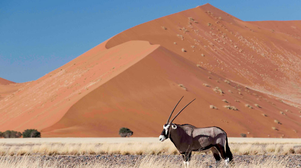 The itinerary includes nine nights at some of Namibia’s most evocative camps including: Little Kulala, the closest luxury camp to the remarkable Sossusvlei Dunes where guests can keep an eye out for ostrich and bat-eared foxes while gliding in a hot-air balloon far above the vast Namib Sand Sea; the award-winning Hoanib Skeleton Coast Camp overlooking the seldom-flowing Hoanib River, offering regular encounters with elephant, lion, giraffe oryx, springbok and even brown hyaena; and Desert Rhino Camp, set in a remote valley deep within the Palmwag Concession, with its uniquely privileged access to endangered desert-adapted black rhino.