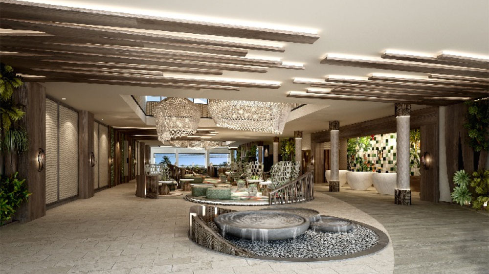 Lead image: Rendering of the refurbished lobby at Sofitel Fiji Resort & Spa.