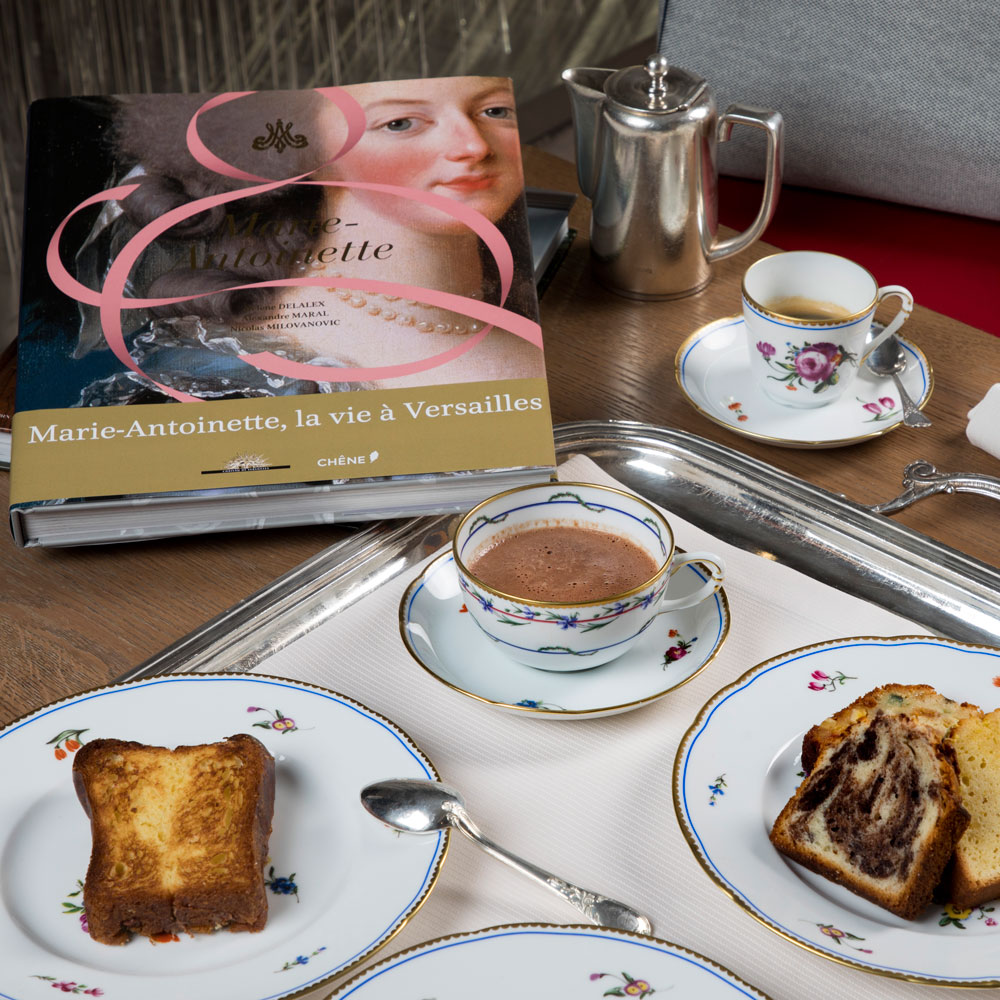 For teatime, La Première customers can enjoy “Les Délices de Marie-Antoinette” comprising a marble cake, chocolate chip brioche and a Louis XIV, the signature dessert of the Ducasse restaurant at the Palace of Versailles. These are all served with a coffee or hot chocolate, which was the custom of the queen.