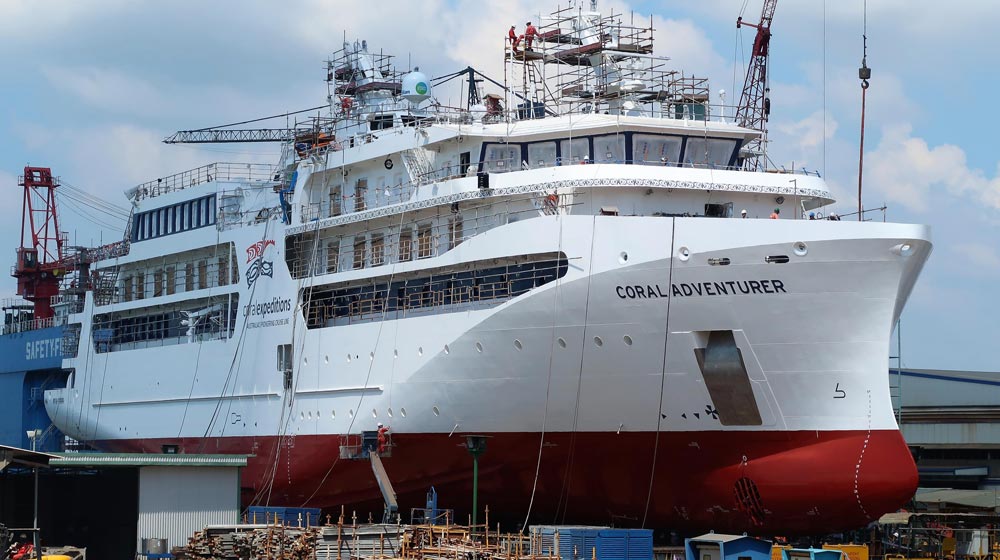 “Excitement was at a real high with Coral Adventurer now officially in the water and her delivery drawing nearer,” says Mark Fifield, Group General Manager Coral Expeditions.