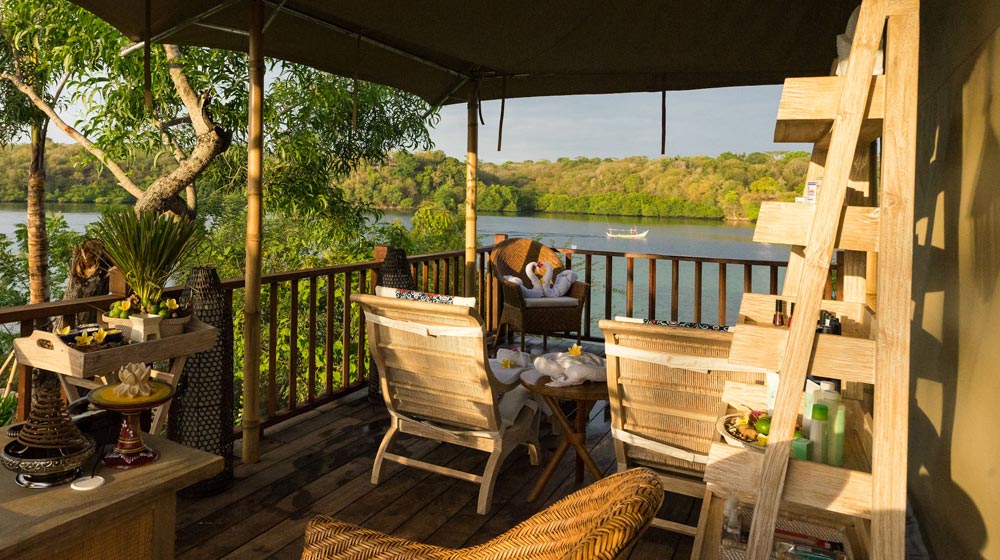 Pasir Putih Spa by Ambiente is a cliff-top indulgence that supports the ‘glamping’ theme of the tented Menjangan Dynasty Resort. A Spa Tent, a Reflexology, Manicure & Pedicure Deck and two private waterfront Spa Pods afford glorious views across Banyuwedang Bay in Northwest Bali, Indonesia.