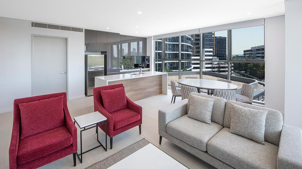 Meriton Suites Carter Street, Lidcombe offers one-, two- and three-bedroom suites and, for the first time, large four-bedroom suites.